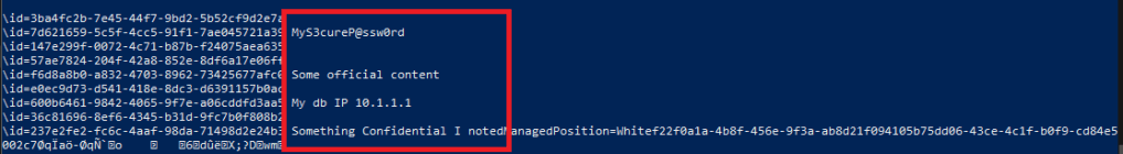 A simple Get-Content to the file plum-sqlite files produced a lot of information. This is where you need to do a death gaze to the content to actually see the clear text data.